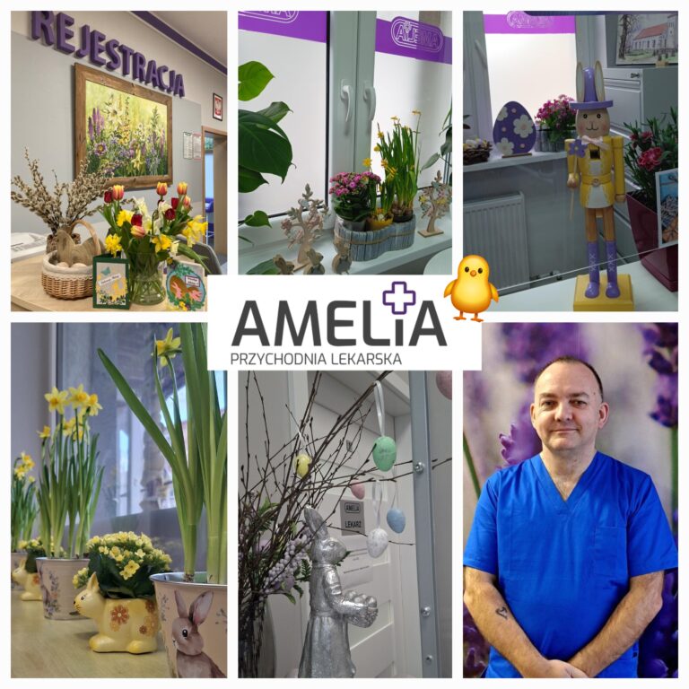 ŚWIĄTECZNA ATMOSFERA W NASZYCH PRZYCHODNIACH – WIELKANOC TUŻ-TUŻ! Przychodnie AMELIA są już gotowe na Wielkanoc! W naszych przychodniach zagościł świąteczny wystrój, który wprowadza ciepłą, wiosenną