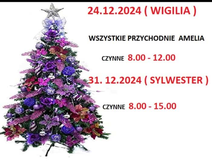 Godziny pracy w przychodniach Amelia wigilia-sylwester