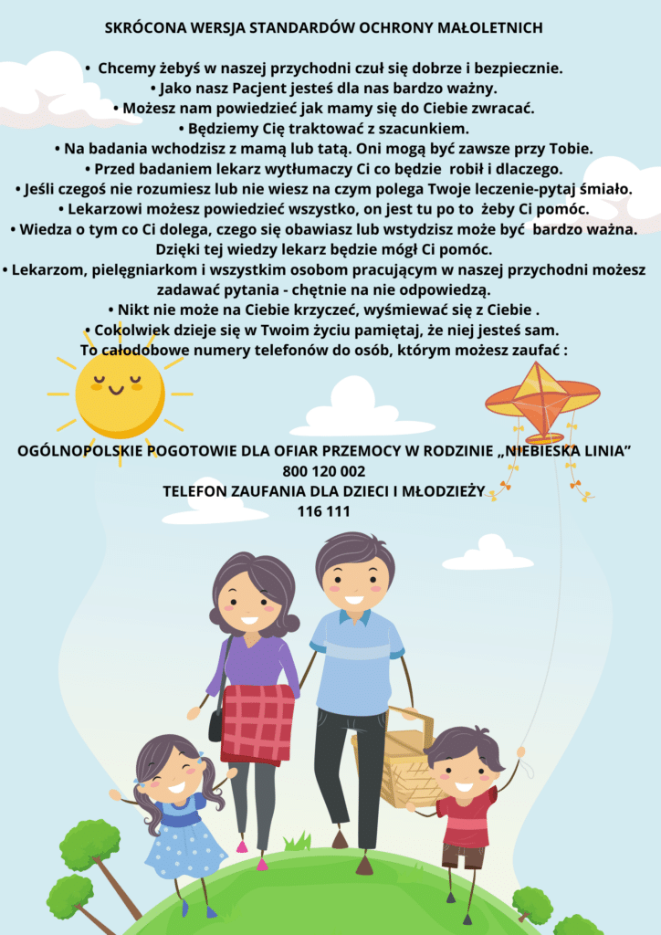 Podstawową zasadą wszelkich czynności podejmowanych przez personel i kierownictwo Przychodni w kontaktach z małoletnimi jest działanie na rzecz ich dobra.